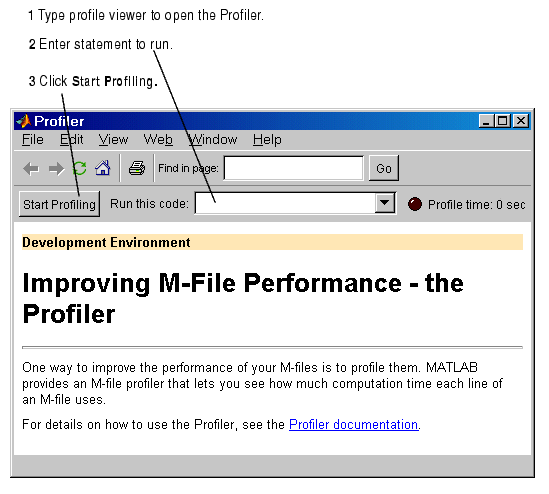 MATLAB includes a graphical user interface, the Profiler, to help you improve the performance of your M-files.